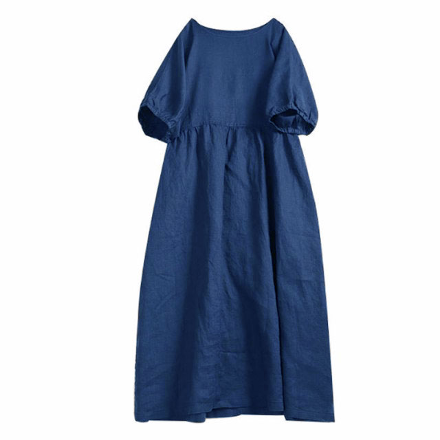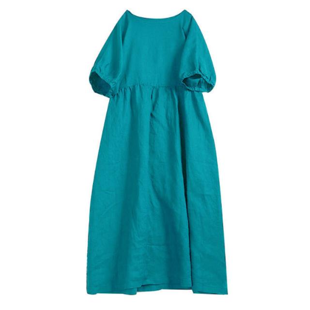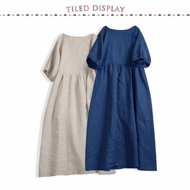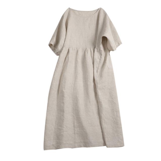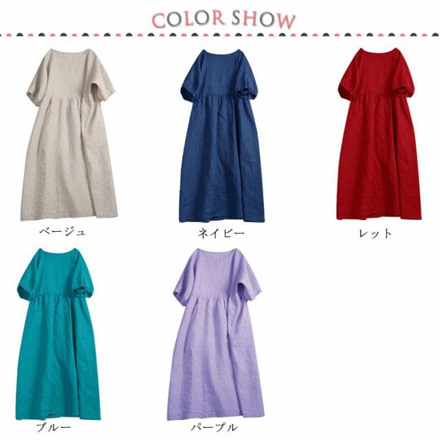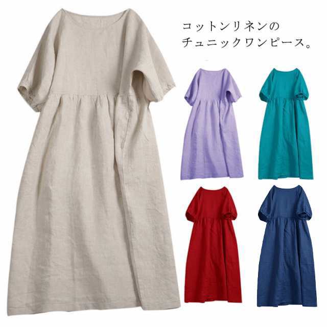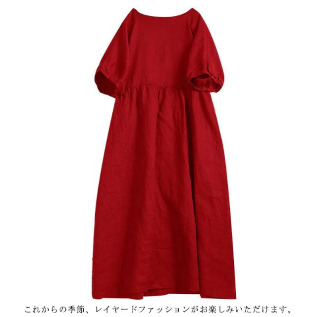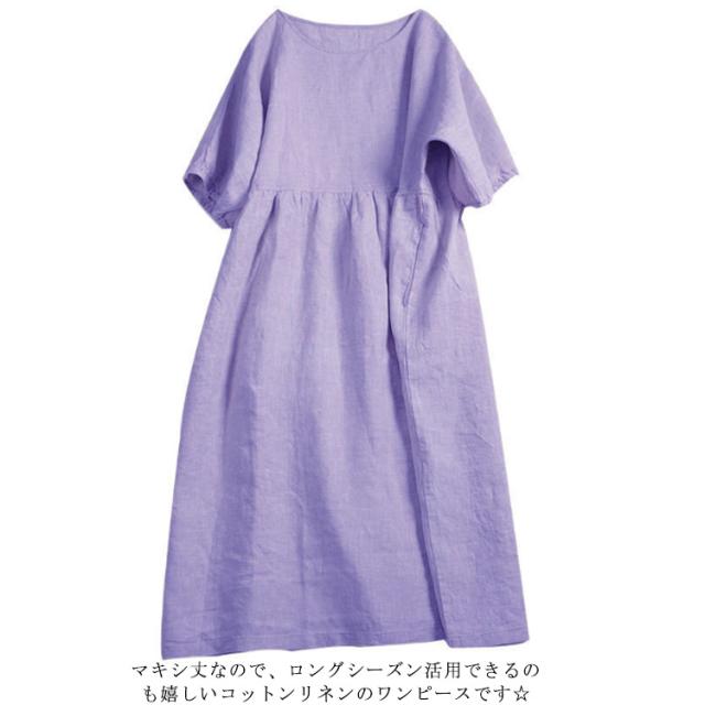 リネンワンピース マキシンピース レディース 体型カバー 春 夏 Uネック 綿麻 麻混 綿麻混 半袖 ゆったり ロングワンピ 20代 30代 40代 50代