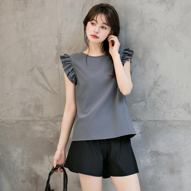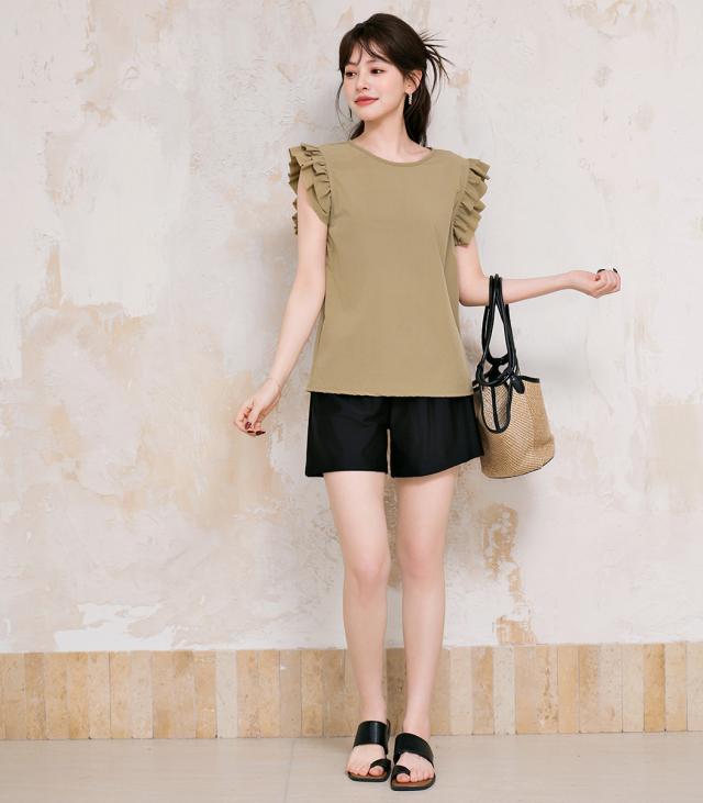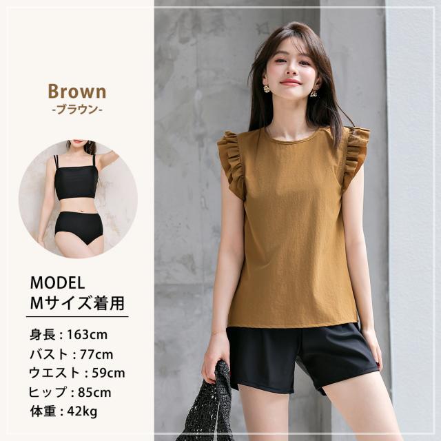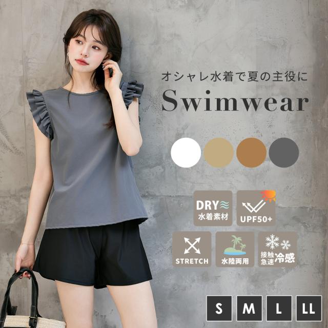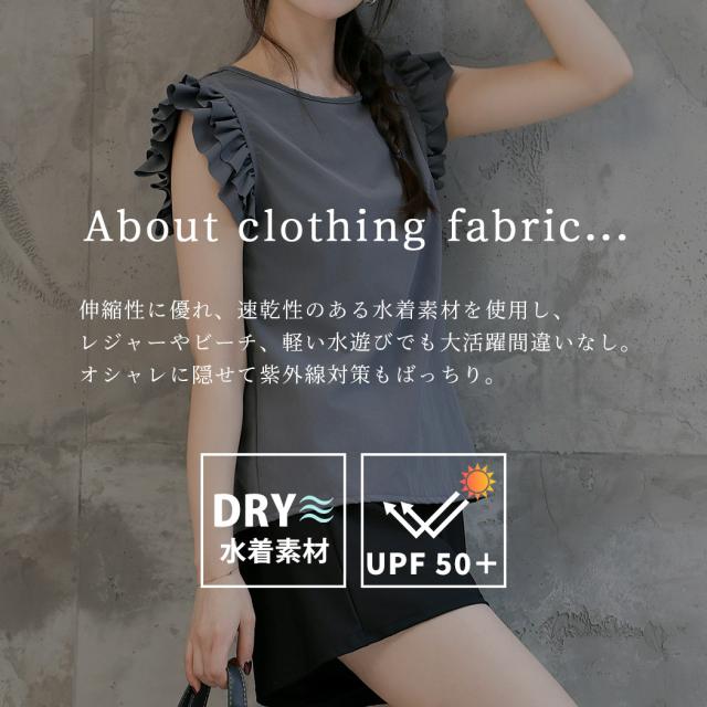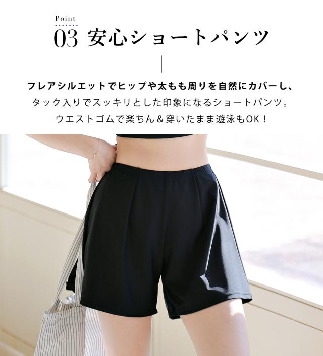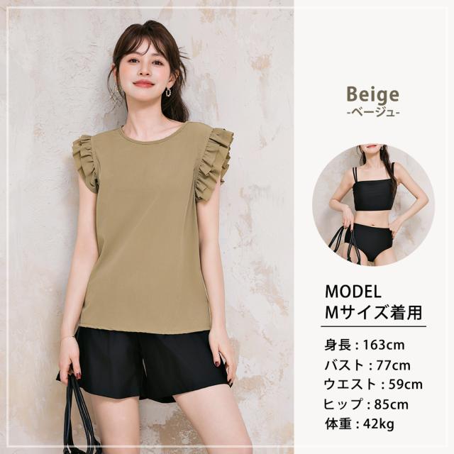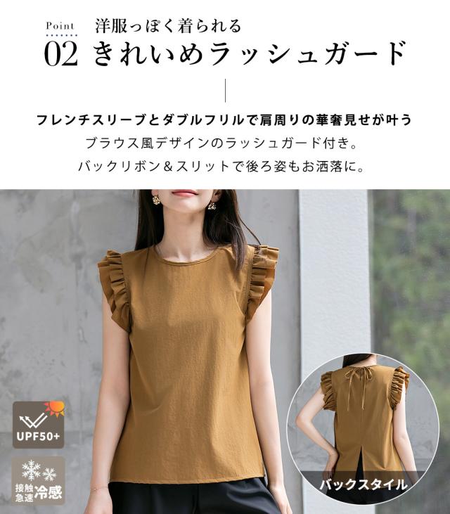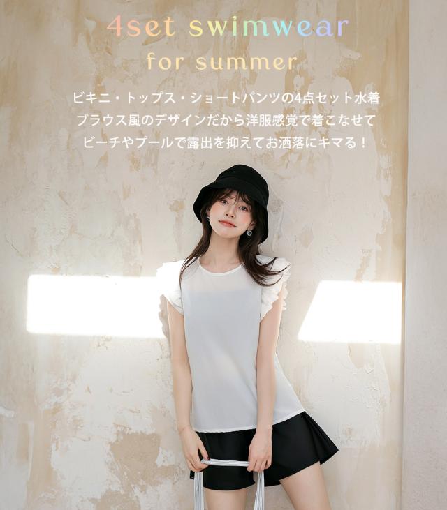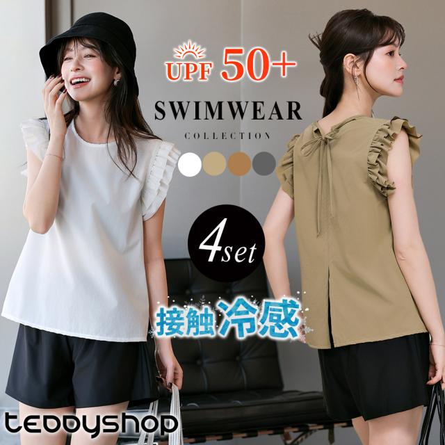夏新作 水着 体型カバー ビキニ ラッシュガード レディース 水陸両用 UPF50+ 紫外線対策 接触冷感 トップス ショートパンツ 4点セット フレンチスリーブ ノンワイヤー パッド付き バスト 盛れる ウエスト ヒップ 太もも カバーアップ 洋服みたいな水着