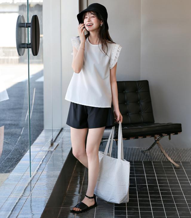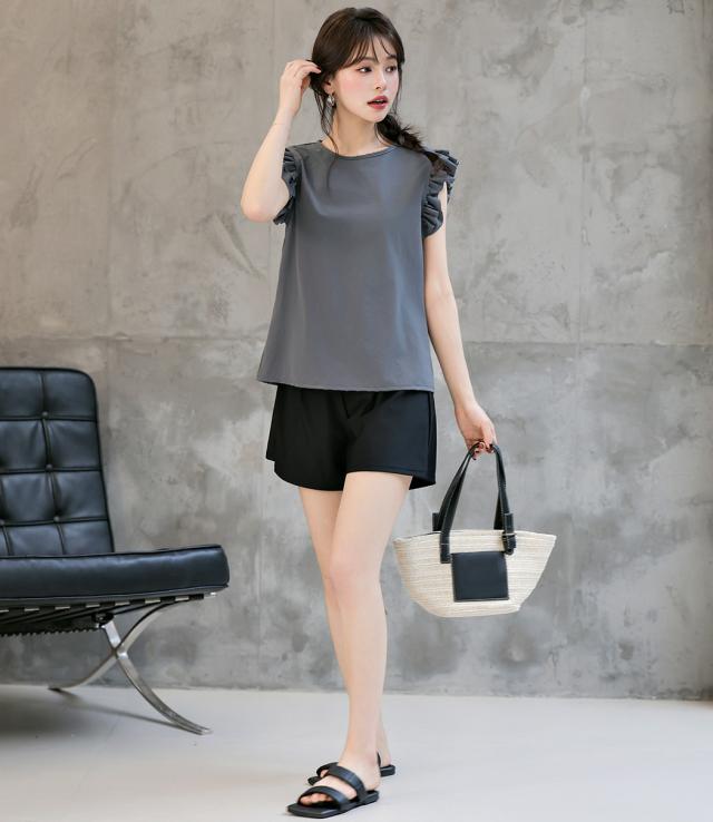 ハイウエストなので腰からお尻まできゅっと包み込みすっきりとしたシルエットに。