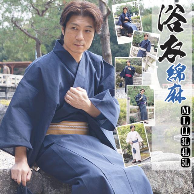 浴衣 メンズ 男物 選べる メンズ浴衣 5点フルセット 綿麻しじら M/L/LL/3L/4L/5L 夏着物 ビッグサイズ ゆかた 花火 お祭り 仕立て上がり 父の日 ギフト モテ浴衣 男前 しじら