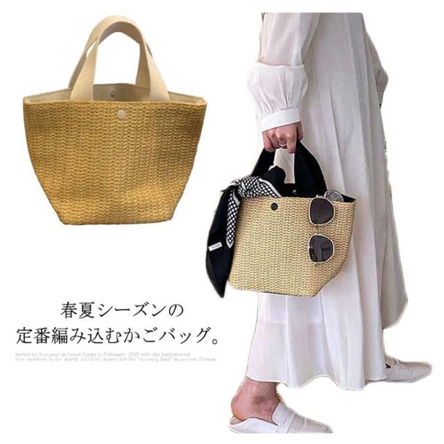 | 春夏シーズンの定番編み込むかごバッグ。 コンパクトに見えますが容量が大きい!ペットボトルも長財布ももすっぽり収まります。 上部にスナップボタンがあるのでちゃんと締まり、心配なくお使いいただけます。 どんな服装にも合わせやすいナチュラルデザイン、柔らかシルエットがオシャレ感たっぷり。 軽くて折り畳めるのも旅行に便利です。 | |