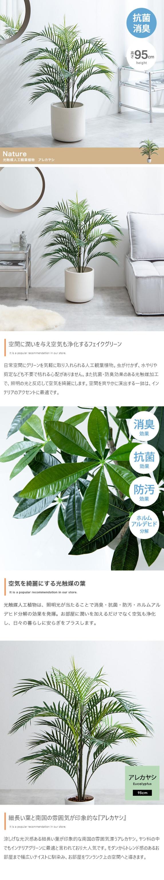 光触媒人工観葉植物 fake green アレカヤシ 幅80cm×奥行80cm×高さ95cm 照明光が当たることで消臭・抗菌・防汚・ホルムアルデヒド分解の効果を発揮 フェイクグリーン 造花 水やり不要 空気清浄 イミテーショングリーン