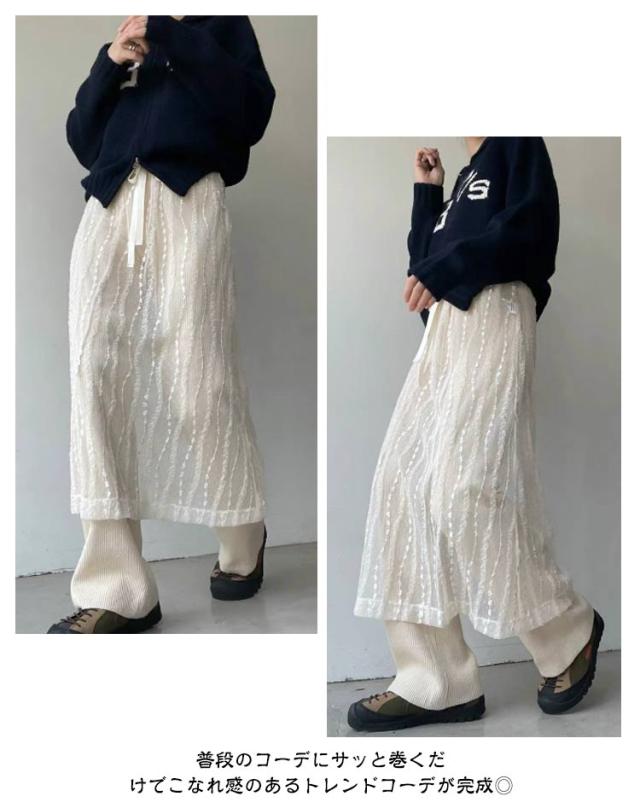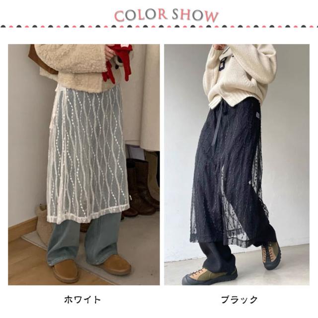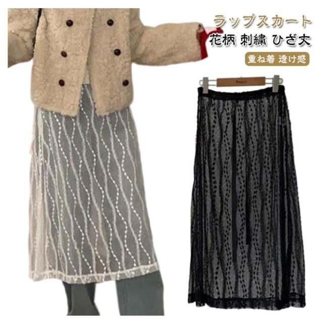 シアーレース レディース 巻くスカート 春夏 ひざ丈 シースルーボトムス SNS話題スカート 巻きスカート シアーレース ラップスカート 重ね着 レイヤード フラワー刺繍 ベージュ ブラック レイヤードラップスカート 総レース 花柄 刺繍 巻き チュール ミモレ丈