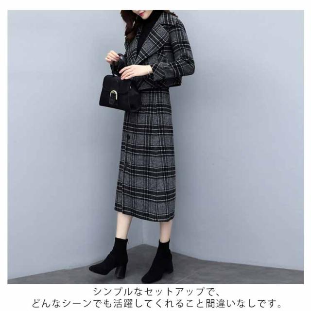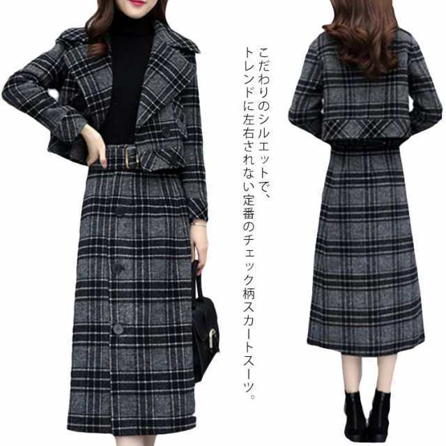 セットアップ レディース スカートスーツ ジャケット テーラードカラー ショート丈 ロングスカート Iライン チェック柄 フォーマルスーツ ツイードスーツ スーツ セットアップ セレモニースーツ 仕事用 入学式 入園式 卒業式 ママスーツ 大人 上品