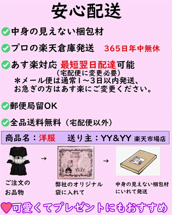中身の見えない配達袋に入れて[洋服]という表示でメール便にて発送致します。お急ぎの方は宅配便にご変更ください。