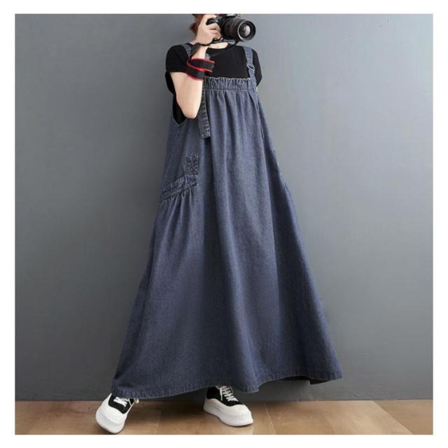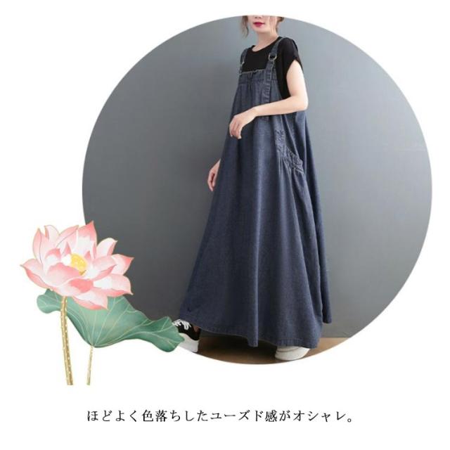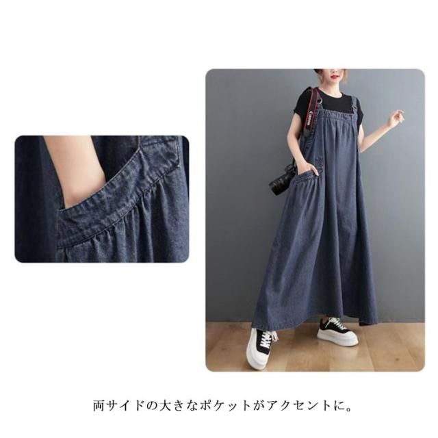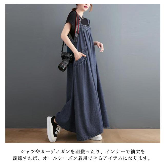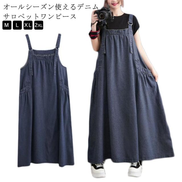 レディースサロペット デニム デニムワンピース オールインワン レディース ロング ジャンパースカート 春 肩紐調節可能 サロペットスカート 調節可 デニム 夏 秋 冬 大きいサイズ 体型カバー 楽ちん 着心地 ワンピース