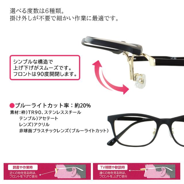 跳ね上げ式 老眼鏡 リーディンググラス ライブラリースタイル フリップアップ