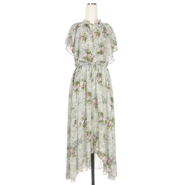 【中古】エトレトウキョウ ETRE TOKYO 花柄 フラワープリント ロングワンピース ドレス F ライトブルー/グレー 水色
