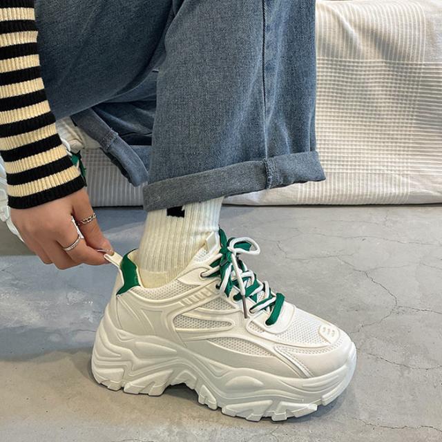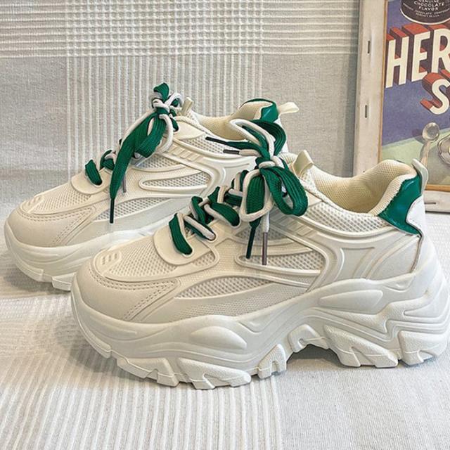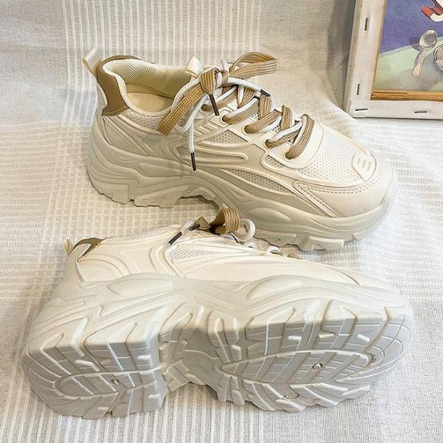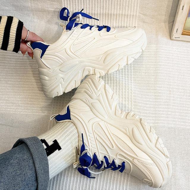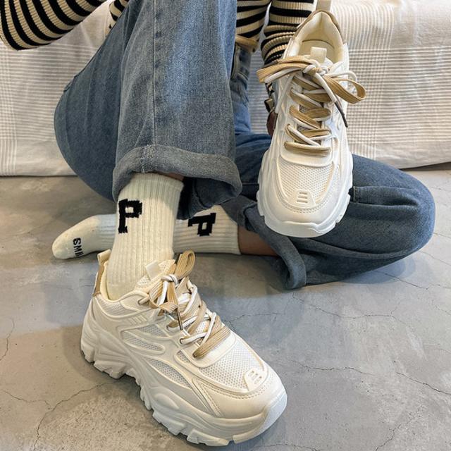 春新作 レディース シューズ 厚底 スニーカー ダッドシューズ 靴 白 ローカット ウォーキング ジム ランニング 運動靴 おしゃれ ^bo-755^