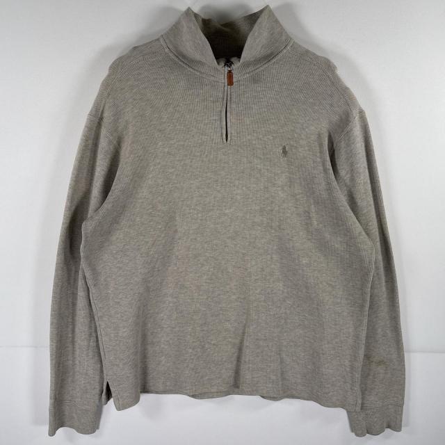 古着 ポロバイラルフローレン Polo by Ralph Lauren スウェット ハーフジップ トレーナー ワンポイントロゴ刺繍 ニット L グレー