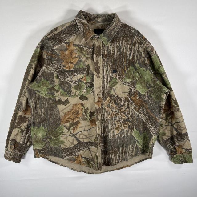 古着 90s/90年代 CODET USA製 長袖 フランネルシャツ リアルツリーカモフラ柄 厚手 ワーク 大きいサイズ ブラウン メンズ
