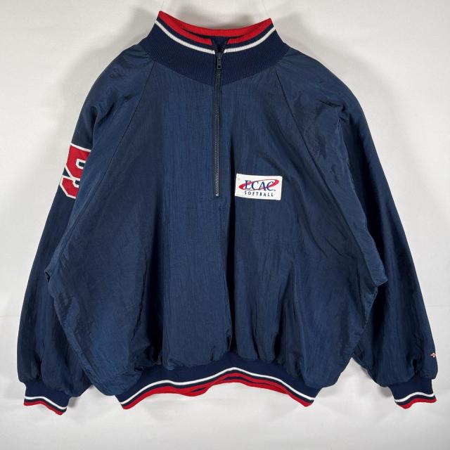 古着 +POS ナイロンスタジャン ハーフジップ プルオーバー 大きいサイズ ワッペン ブルゾン 65 ダークネイビー メンズ