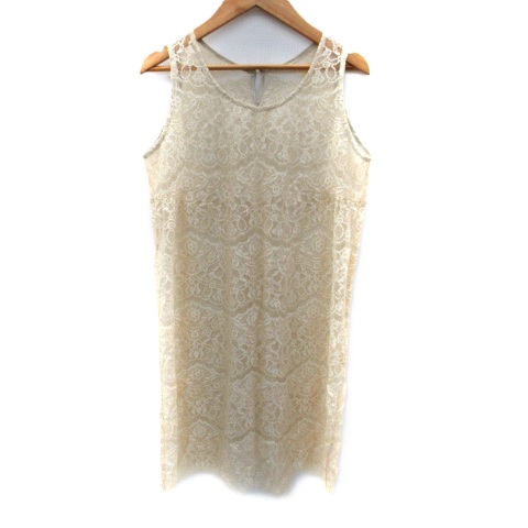 【中古】OROIX ワンピース ひざ丈 ノースリーブ 総レース シースルー アイボリー /SM27 レディース