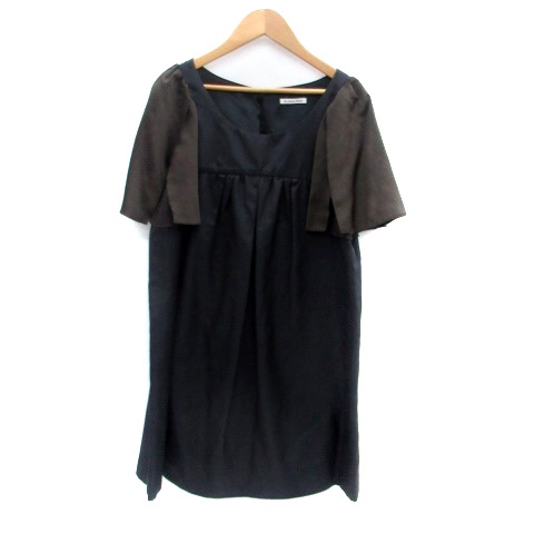【中古】ルクールブラン le.coeur blanc ワンピース ラウンドネック 半袖 ミニ丈 38 M 黒 ブラック 茶色 ブラウン