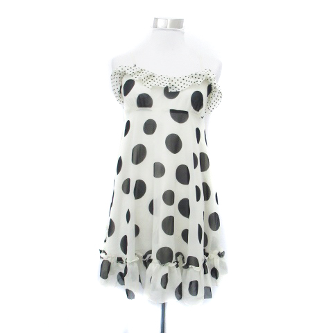 【中古】バービー Barbie キャミソールワンピース ミニ丈 ドット柄 S オフホワイト 黒 ブラック /HO5 レディース