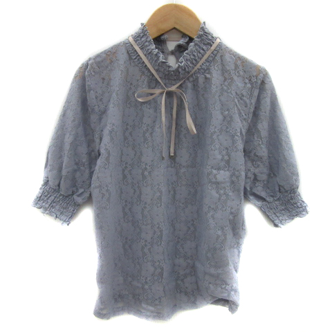 【中古】ジルバイジルスチュアート ブラウス シャツ 半袖 花柄 総レース リボン F くすみブルー レディース