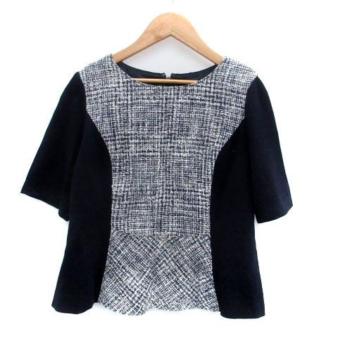 【中古】セブンアイディコンセプト カットソー ラウンドネック 半袖 ツイード 切替 40 L 紺 ネイビー オフホワイト