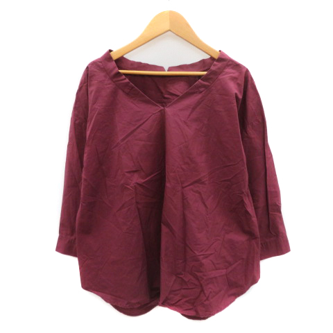 【中古】ノーリーズ Nolley's ブラウス カットソー 七分袖 Vネック オーバーサイズ 38 M ボルドー /YK42 レディース
