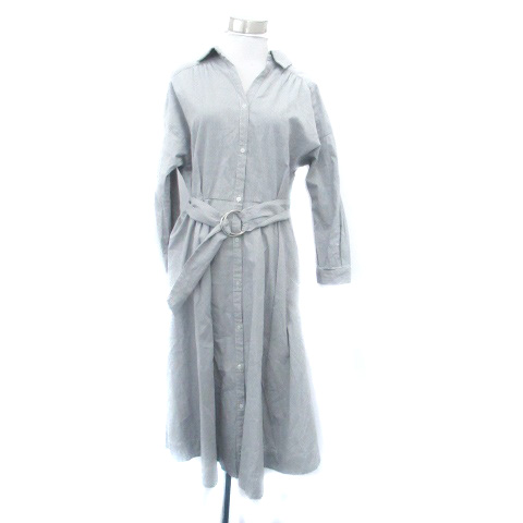 【中古】ミスティウーマン シャツワンピース スキッパーカラー 長袖 ストライプ柄 F オフホワイト 紺