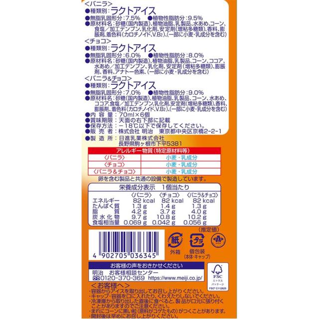 商品名 [アイス] 明治 うずまきソフト バニラ・チョコ・バニラ&チョコ 420ml×8個 容量 420ml×8個 原材料名 <バニラ>砂糖(国内製造)、植物油脂、乳製品、水あめ、コーン、食塩/加工デンプン、乳化剤、安定剤(増粘多糖類)、香料、膨張剤、着色料(カロチノイド、V.B2)、(一部に小麦・乳成分を含む)<チョコ>砂糖(国内製造)、植物油脂、乳製品、コーン、ココア、水あめ/加工デンプン、乳化剤、安定剤(増粘多糖類)、膨張剤、香料、アナトー色素、(一部に小麦・乳成分を含む)、<バニラ&チョコ>砂糖(国内製造)、植物油脂、乳製品、コーン、水あめ、ココア、食塩/加工デンプン、乳化剤、安定剤(増粘多糖類)、香料、膨張剤、着色料(カロチノイド、V.B2)、(一部に小麦・乳成分を含む) アレルギー特定原材料 小麦、乳 賞味期限 商品の発送時点で、60日以上あるものをお届けいたします 保存方法 -18℃以下で保存してください。