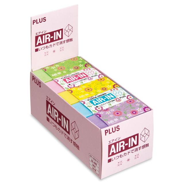 プラス 消しゴム エアイン 絵柄付き フロ ーラル 36-480×20 5色入 (ブルー系 ピンク系 グリーン系 イエ ロー系 パープル系) 各4個 5色セッ