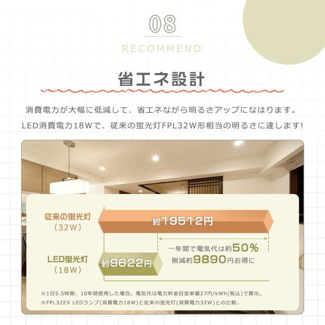 ★約50000時間、寿命は蛍光灯の約4〜8倍で遥かに長寿命!交換する頻度が少なくて済みます!電力の消費を大幅に節約しお家の電気代も削減できます。低消費電力を実現!
