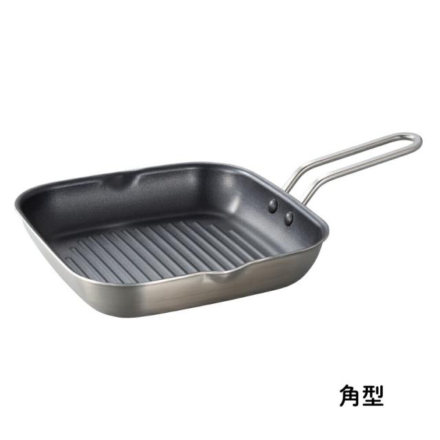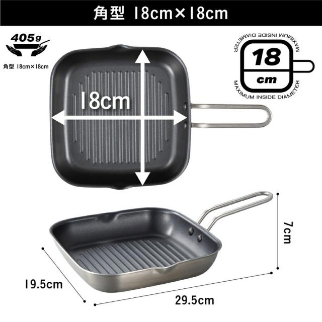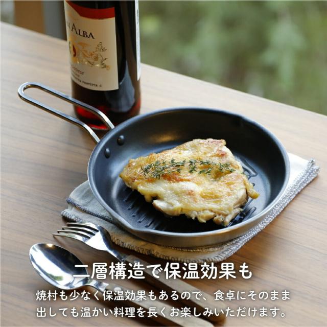 シービージャパン 二層鋼グリルパン 角型 18cm×18cm 丸型 19cm グリルパン フライパン IH対応 ガス火 アウトドア オーブン トースター コンロ ステーキ 直火 キャンプ BBQ