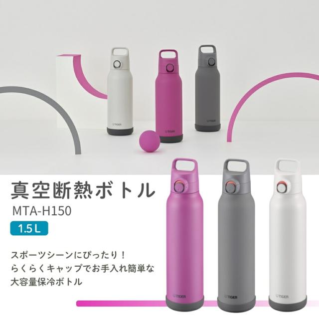 タイガー魔法瓶 真空断熱ボトル 水筒 1.5L MTA-H150 スポーツドリンク対応 保冷 ワンタッチ 直飲み ダイレクト 大容量 スポーツ ジム 運動 部活 子供 大人 底カバー 軽量 スラントハンドル パッキン一体型せん ステンレス ボトル