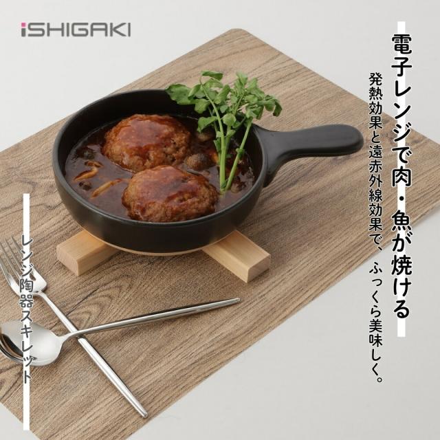 イシガキ産業 DLレンジ陶器スキレット 15cm 電子レンジ調理器 焼き魚 焼く 遠赤外線 オーブン 魚焼きグリル 食器乾燥機 食器洗い乾燥機 ガス火 調理器具