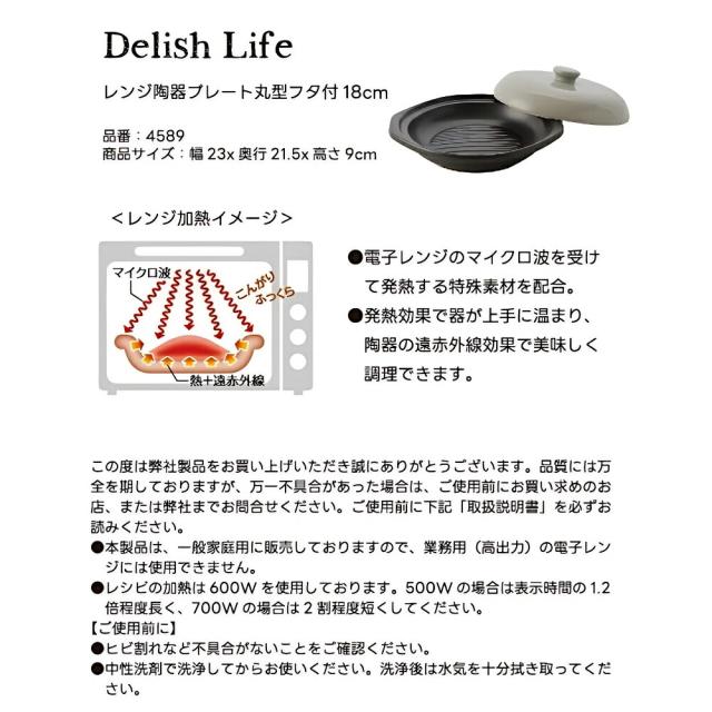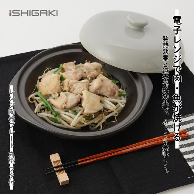 イシガキ産業 DLレンジ陶器プレート 丸型 フタ付 18cm 電子レンジ調理器 焼き魚 焼く 遠赤外線 オーブン 魚焼きグリル 食器乾燥機 食器洗い乾燥機 調理器具