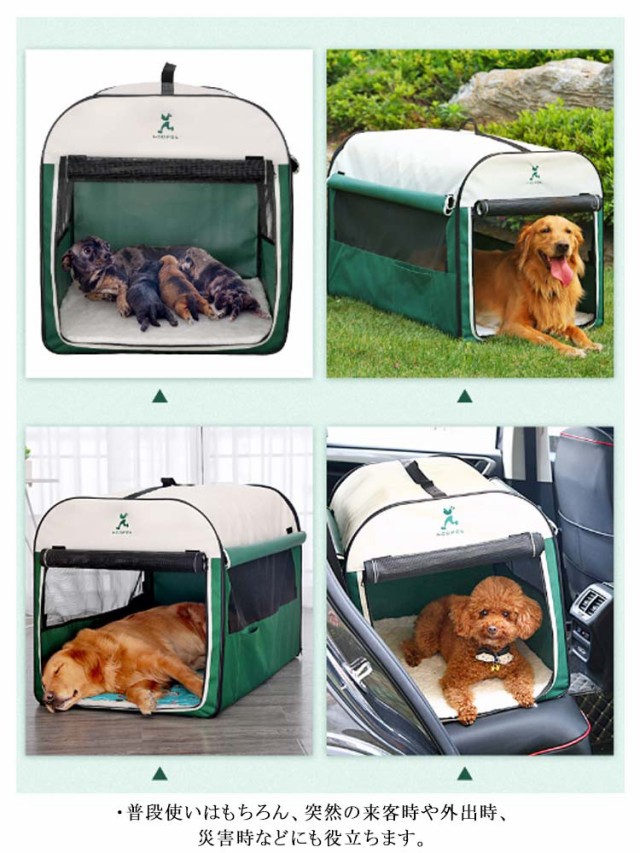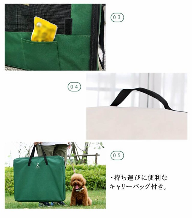 | ・折り畳み式の犬用ポータブルゲージ。 ・持ち運びに便利なキャリーバッグ付き。 ・折りたたみ式のソフトケージだから組み立て・折りたたみも素早く簡単。 ・コンパクトに折りたたんで収納できるバッグ型から簡単に立体ケージにすることができます。 ・窓やドアはメッシュ素材のためワンちゃんも快適に過ごすことができます。飼い主さんの顔なども確認できるためワンちゃんも安心。 ・普段使いはもちろん、突然の来客時や外出時、災害時などにも役立ちます。 ・組み立て方は簡単!袋から取り出して広げた後、上の取っ手部分を起き上がらせて、チャックを上げて閉めるだけ完成! | |