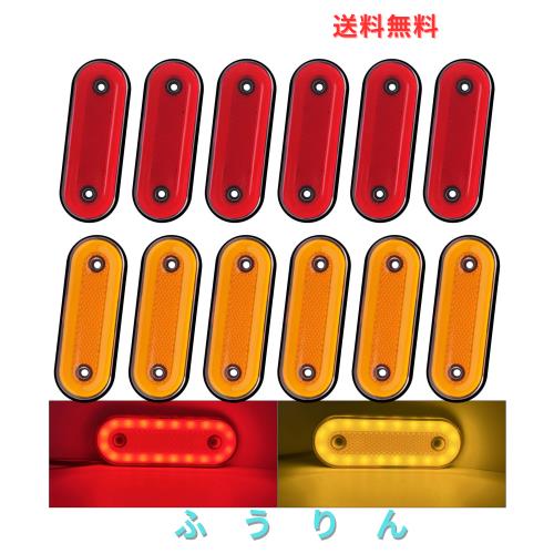 X-STYLE サイドマーカー LED 12V 24V 赤 黄 2色 トレーラー 車幅灯 トラック用 マーカー 路肩灯 角形 高輝度 2色組み合わせ 12個セット(
