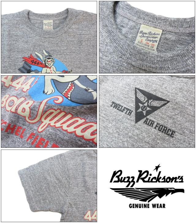 バズリクソンズ BUZZ RICKSON'S スラブヤーン 半袖 Tシャツ プリント "SLUB YARN T-SHIRT 444th BOMB SQ" BR79560