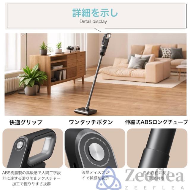 掃除機 コードレスは最先端のブラシレスモーターを採用し、吸引力が32000Pa以上に達し、従来の掃除機より65%アップ!サイクロン掃除機で吸引持続率を99%!床面の微細なホコリからペットの毛、隙間に潜むホコリも、この掃除機で逃しません、一往復で残りなし!超強力な吸引力と低騒音を両立させており、掃除機動作中の音が大幅軽減。コードレス掃除機なので、電源コードに縛られないのは最大のメリットです。