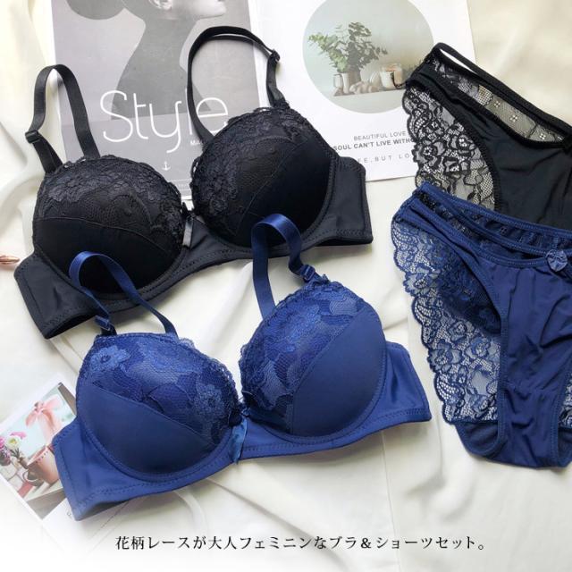花柄レースとモールドカップで快適なフィット感。後ろ姿も美しいレースショーツセット