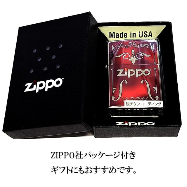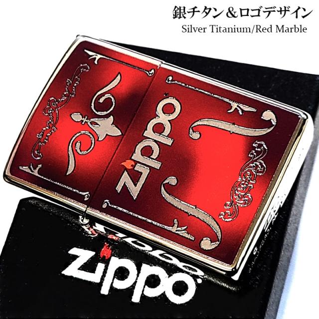 ZIPPO ライター ロゴデザイン 銀チタン シルバー&レッドマーブル ジッポ かっこいい チタニウム加工 赤 おしゃれ メンズ ギフト プレゼント