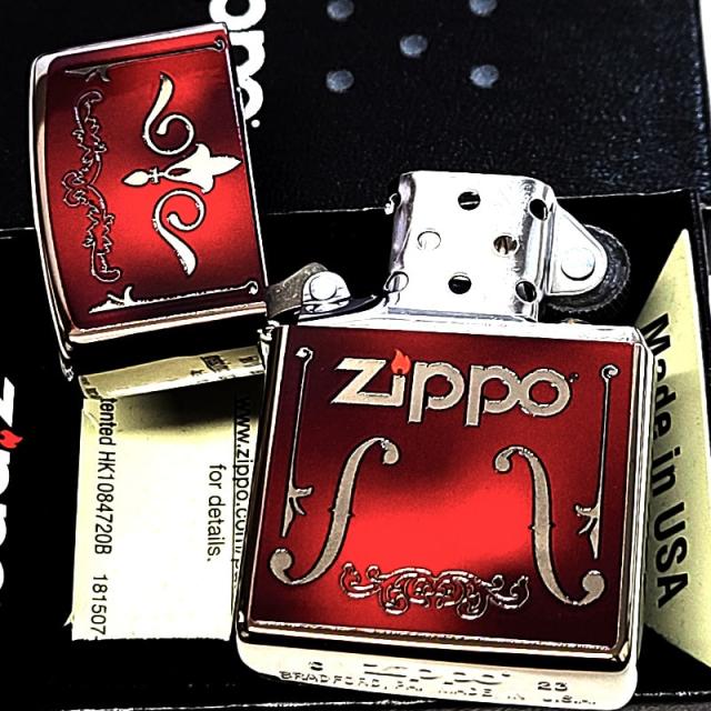銀チタンのボディに深みのあるレッドマーブル模様を施したZIPPOライター。