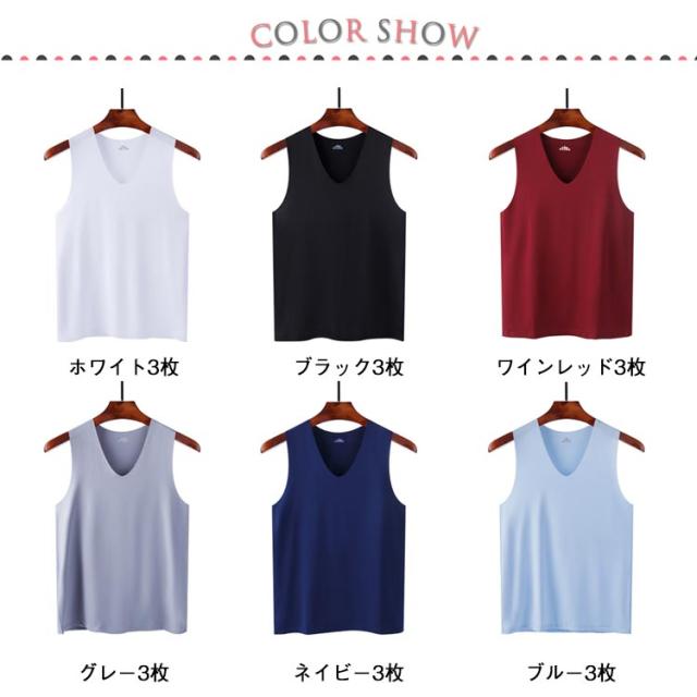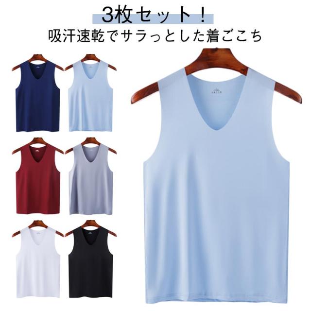 シームレス タンクトップ メンズ 3枚セット 無縫製 接触冷 Vネック シームレス インナーシャツ 吸汗速乾 肌着 ノースリーブ メンズ 速乾 薄手 軽量 伸縮性 通気性 男性用 涼しい トップス タンクトップ ひんやり 重ね着 カジュアル 春夏 夏用