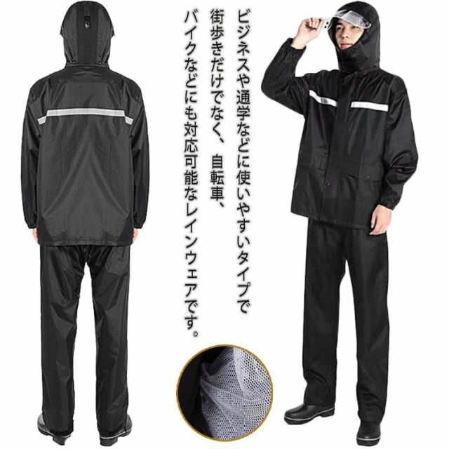 レインコート メンズ レディース 2点セット レインウェア ゴルフウェア 防水 雨ガッパ レインスーツ アウトドア 反射テープ付き 二重透明バイザー付き 防災 自転車 バイク 雨合羽 雨具 通学 通勤 豪雨 梅雨対策 雨具 大きいサイズ