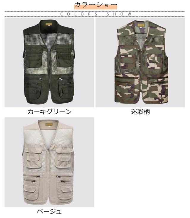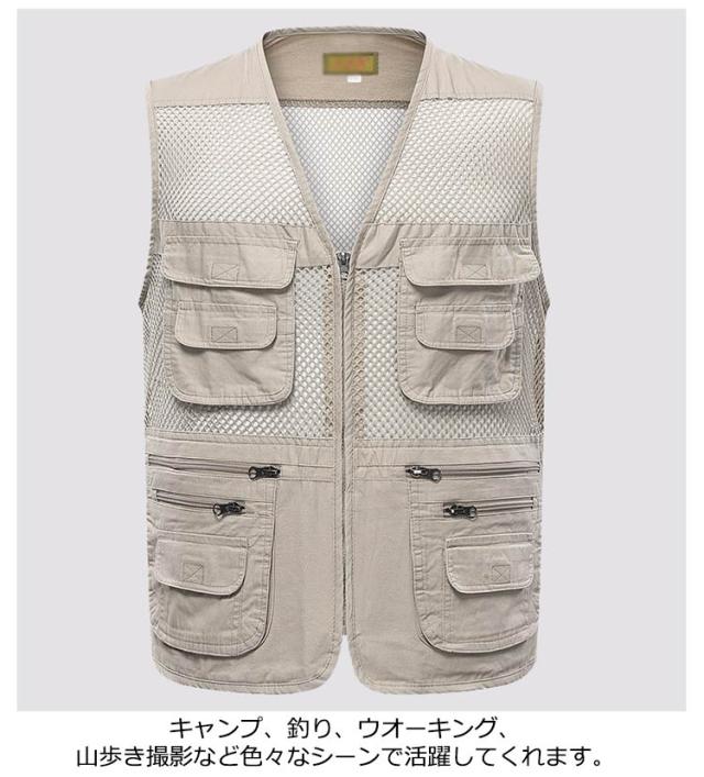 | 通気性、防風性、速乾性、などがある多機能ベストです。 暑い季節の作業からレジャー・フィッシングまで、多用途にお使いいただけるメッシュベストです。 充分な収納量を確保するポケットは装備しつつ、限界までメッシュ面積を確保したとっても涼しい。 肩部分には柔らかい素材でカメラバッグやショルダーバッグを長時間しても肩こりしにくい、疲れにくいです。 キャンプ、釣り、ウオーキング、山歩き撮影など色々なシーンで活躍してくれます。 | |