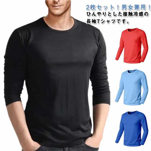 2枚セット インナーシャツ 接触冷感 tシャツ メンズ レディース 夏 長袖 涼しい トップス アイスシルク 長袖tシャツ Tシャツ 薄手 ストレッチ 吸水速乾 丸首 インナーシャツ 作業服 作業着 トレーニングウェア ゴルフ 野球 大きいサイズ バイク 釣り キャンプ スポーツ S-5XL