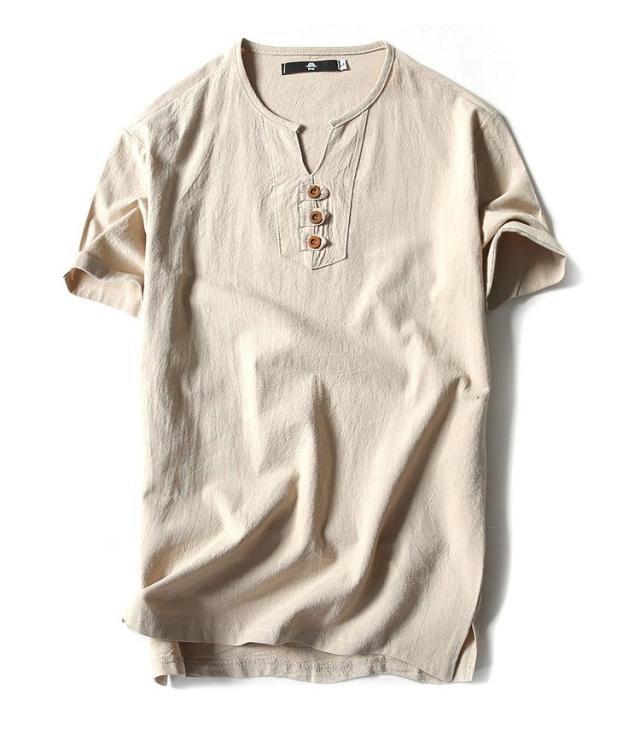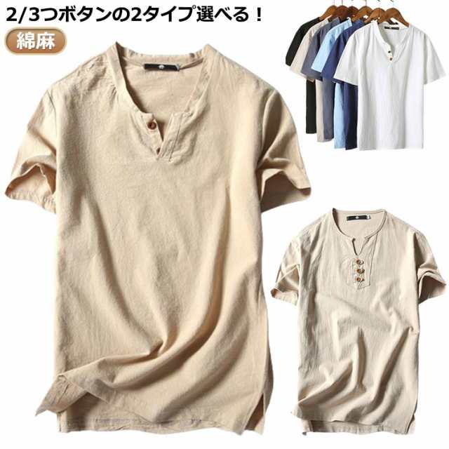 リネンシャツ メンズ カジュアルシャツ 夏 半袖 tシャツ メンズ ヘンリーネック リネンtシャツ 2/3つボタンの2タイプ選べる! カジュアルシャツ 夏物 綿麻 無地 プルオーバーシャツ おしゃれ 父の日 春夏 夏物 涼しい 大きサイズ 夏服 トップス