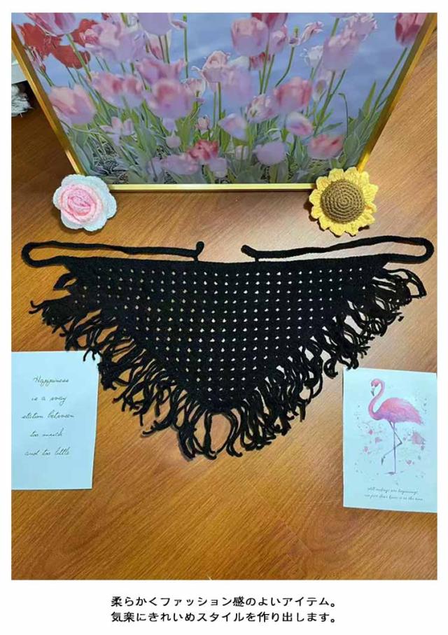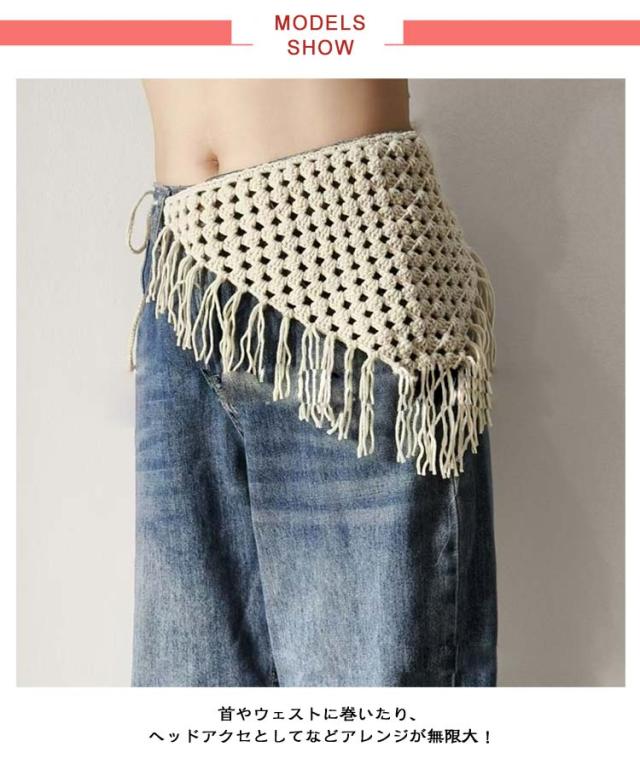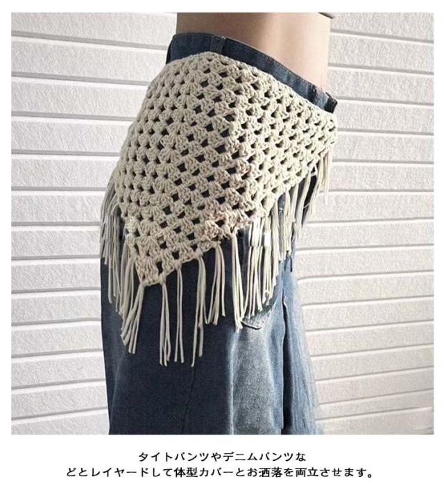 付け裾 かぎ編み ニット 透かし編み スカーフ 三角 フリンジ ウエストマーク ウエストベルト ヒップスカーフ レイヤード アクセサリー 森ガール 腰巻き 肩掛け 韓国 ダンス 腰巻 付け裾 着重ね風 ファッション小物 ウエストニッパー