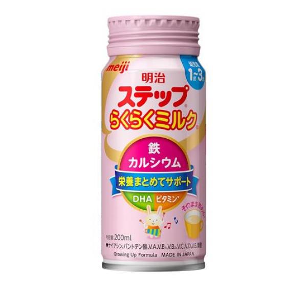 ●明治ステップ らくらくミルク 液体 缶タイプ●幼児用 1歳〜3歳 フォローアップミルク●1〜3歳頃の不足しがちな栄養をサポートするフォローアップミルクです。●明治ステップなら、飲んだり、料理に使用していただくだけで簡単に栄養がサポートできます。●幼児期に不足しがちな鉄やカルシウムの推奨量を100%(*1)摂取することができます。●お子さまの発育に大切なDHA、腸内のビフィズス菌に届くフラクトオリゴ糖、食事では摂りにくいビタミンをまとめてサポートします。●離乳食にプラスして。●粉ミルクと違い、すぐに使える!そのまま飲める!便利な液体ミルク。●種類別:調製液状乳[*1:「日本人の食事摂取基準(2020年版)」推奨量(12〜36ヵ月)に対する割合(1日あたり「明治ステップ」を400mL飲用したとき)]