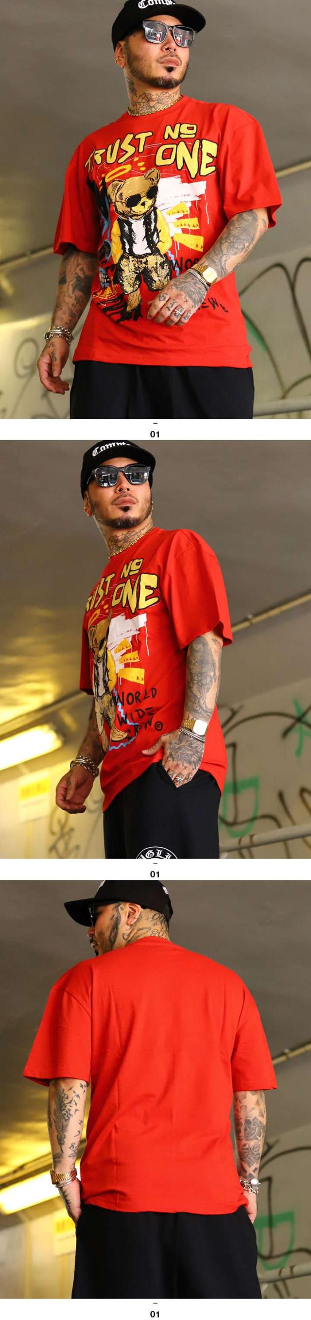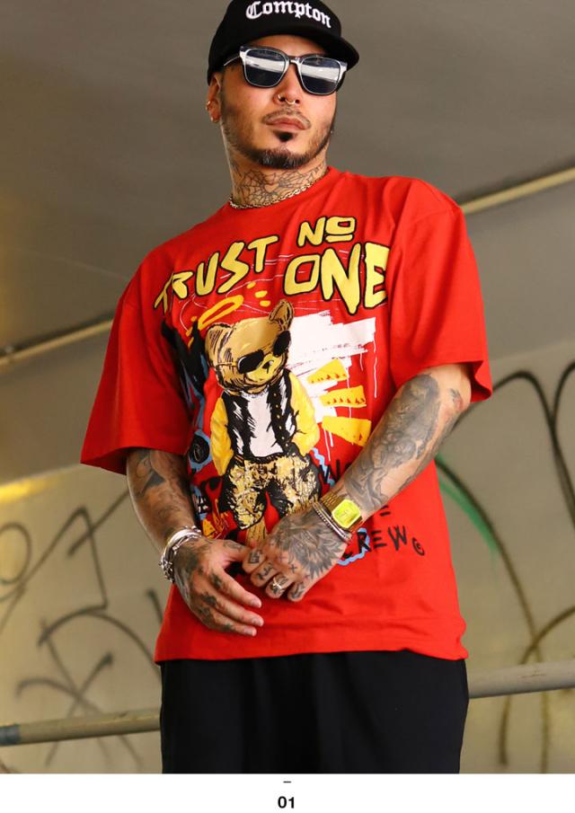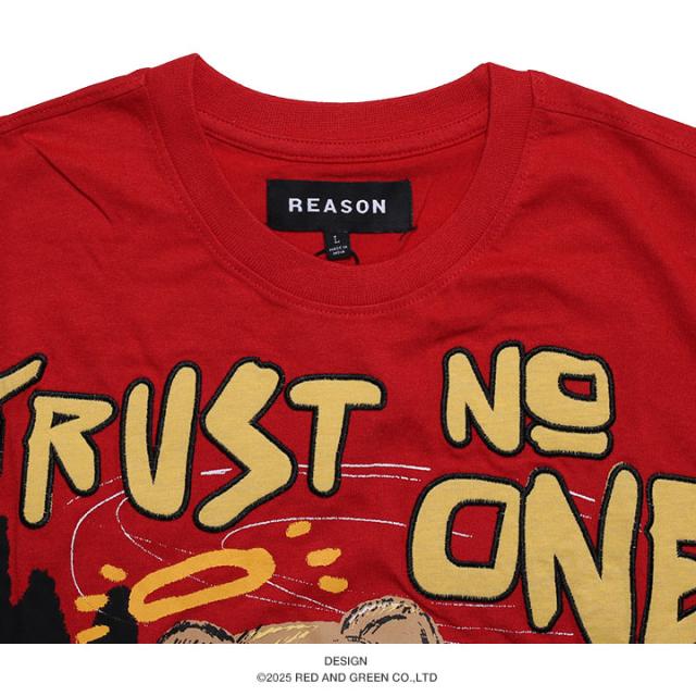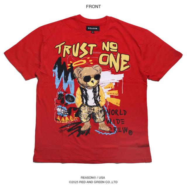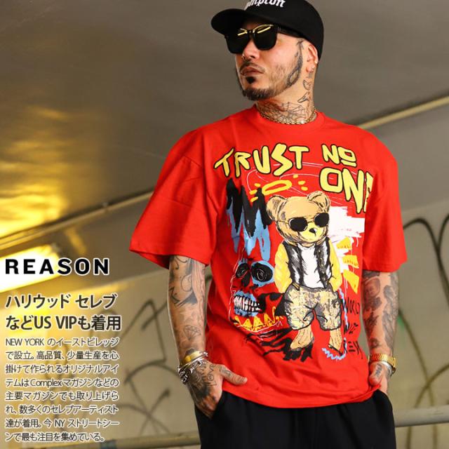 ラスト1点【24%OFF】REASON Tシャツ 半袖 メンズ 赤 大きいサイズ リーズン ブランドロゴ 熊 ベアー アニマル 動物 かわいい Trust None 何も信じるな メッセージ スラング スカル ビッグシルエット b系 ヒップホップ ファッション ストリート系 ハイ 服 2025春夏 SP2517
