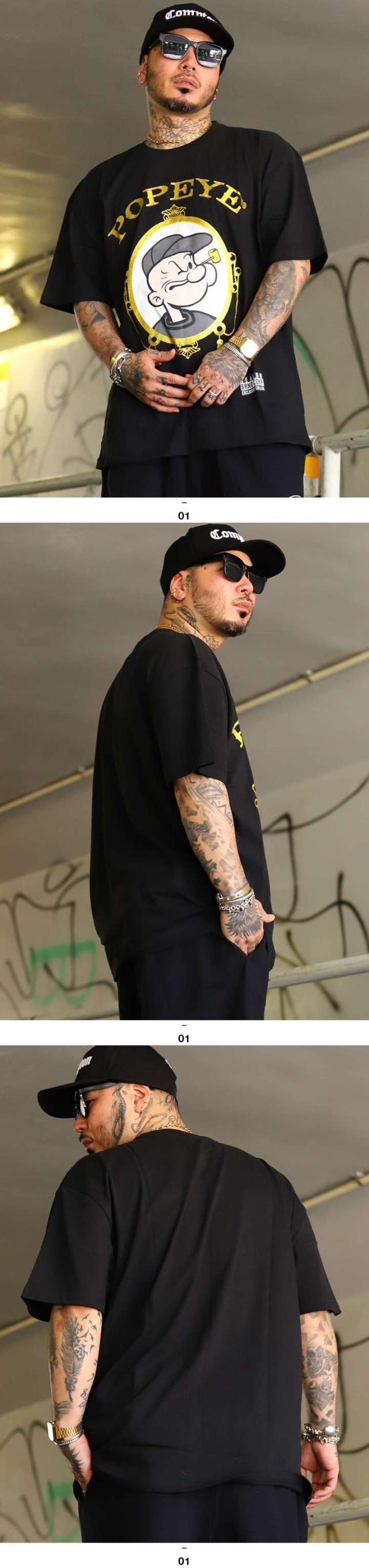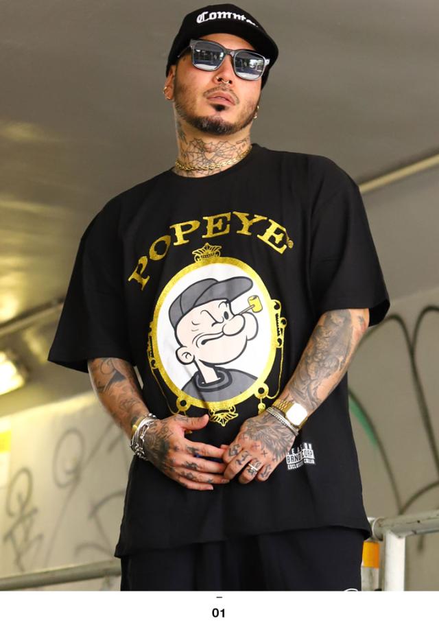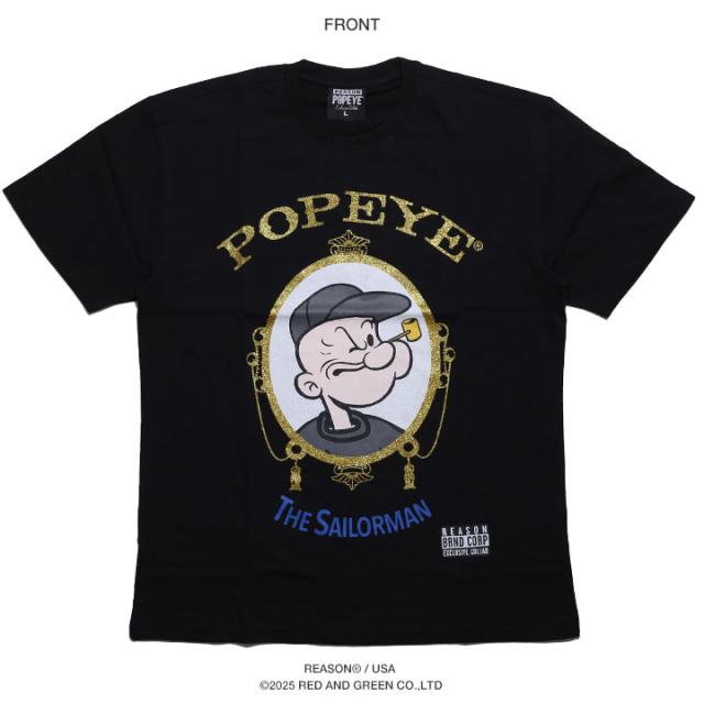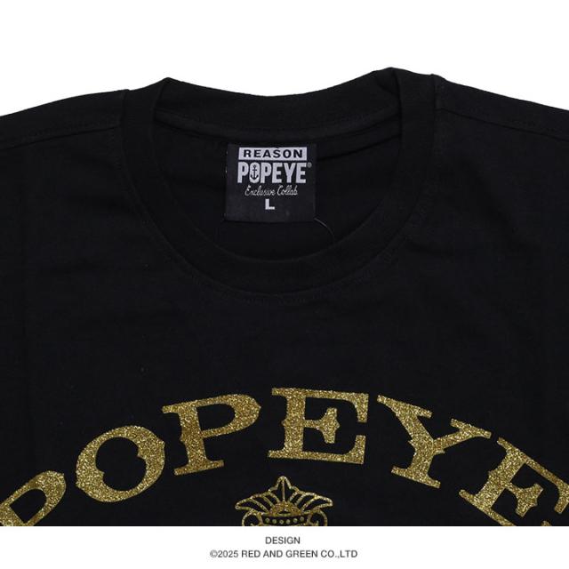 ラスト1点【40%OFF】REASON × ポパイ Tシャツ 半袖 メンズ 黒 大きいサイズ Popeye 限定 コラボ 公式 リーズン シンプル ブランドロゴ ラッパー グリッター 金プリント ゴールドプリント ビッグシルエット b系 ヒップホップ ストリート系 ハイ 服 2025春夏 POP47