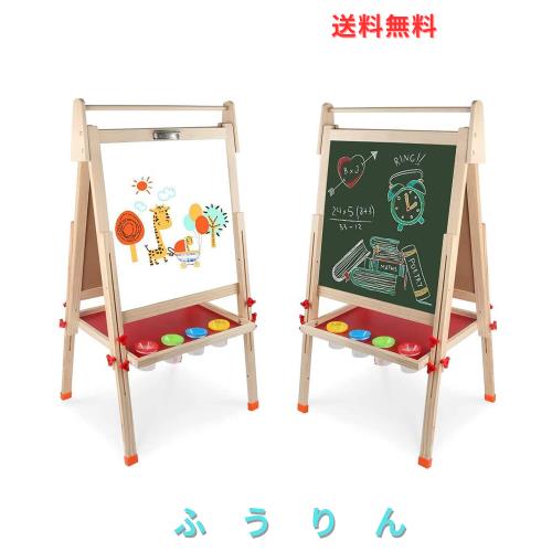お絵かきボード 木製イーゼル 黒板とホワイトボードを含むダブルパネル 落書き 子供たちが学ぶのを助ける 96~132cmまで高さ調節可能 折り