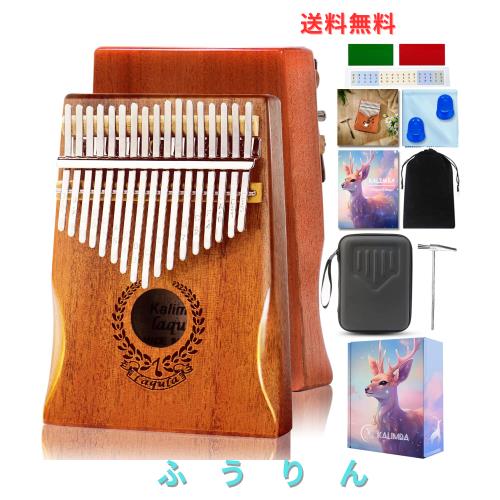 カリンバ 17キー マホガニー 親指ピアノ 初心者セット チューニングハンマー 防振収納ケース付き 保護ケース付き 日本語学習指導 楽譜 カ