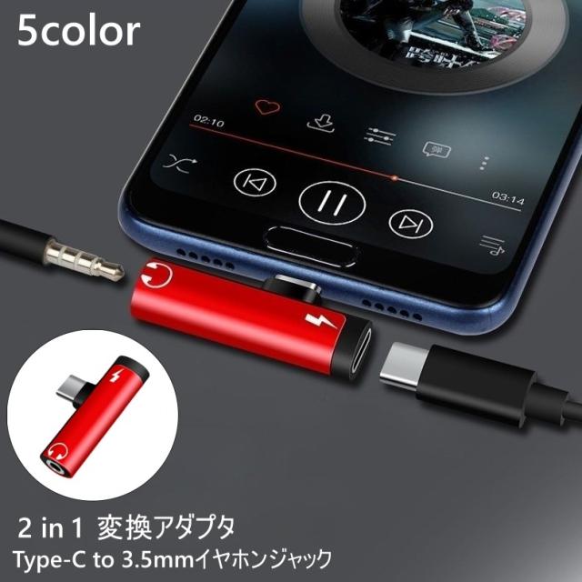 Type-C to 3.5mm イヤホンジャック 変換アダプタ 変換コネクタ 2in1 充電 スマホ タブレット イヤホン 音楽