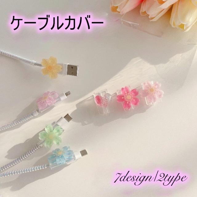ケーブルカバー 単品 1個 ケーブルプロテクター 充電ケーブルカバー USBケーブル 充電器アクセサリー かわいい 花 ハート